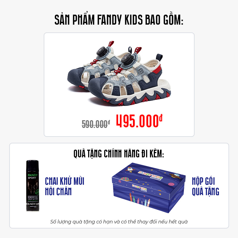 Sản phẩm Giày Sandal trẻ em Fandy Kids Khóa vặn Eva Xám Navy AU7880 chính hãng được bảo hành keo trọn đời và luôn đi kèm những phần quà hấp dẫn.