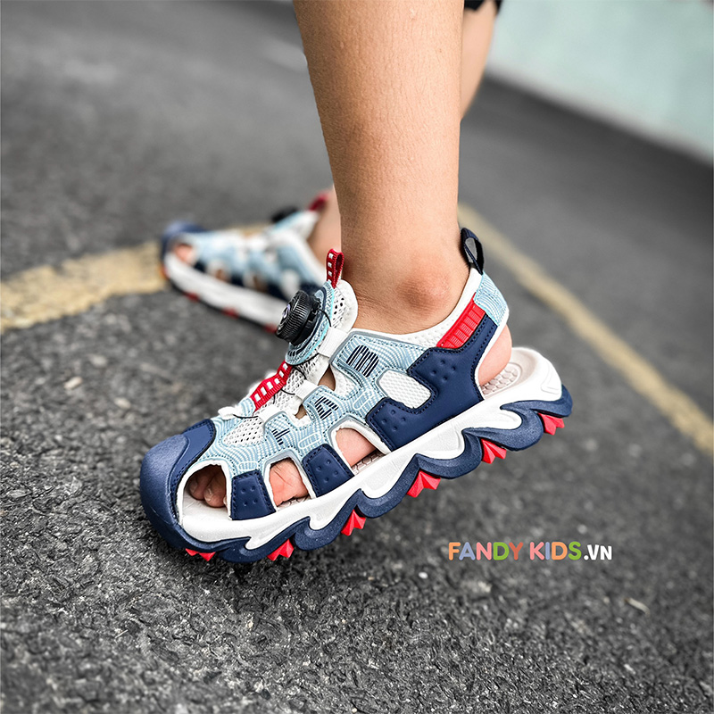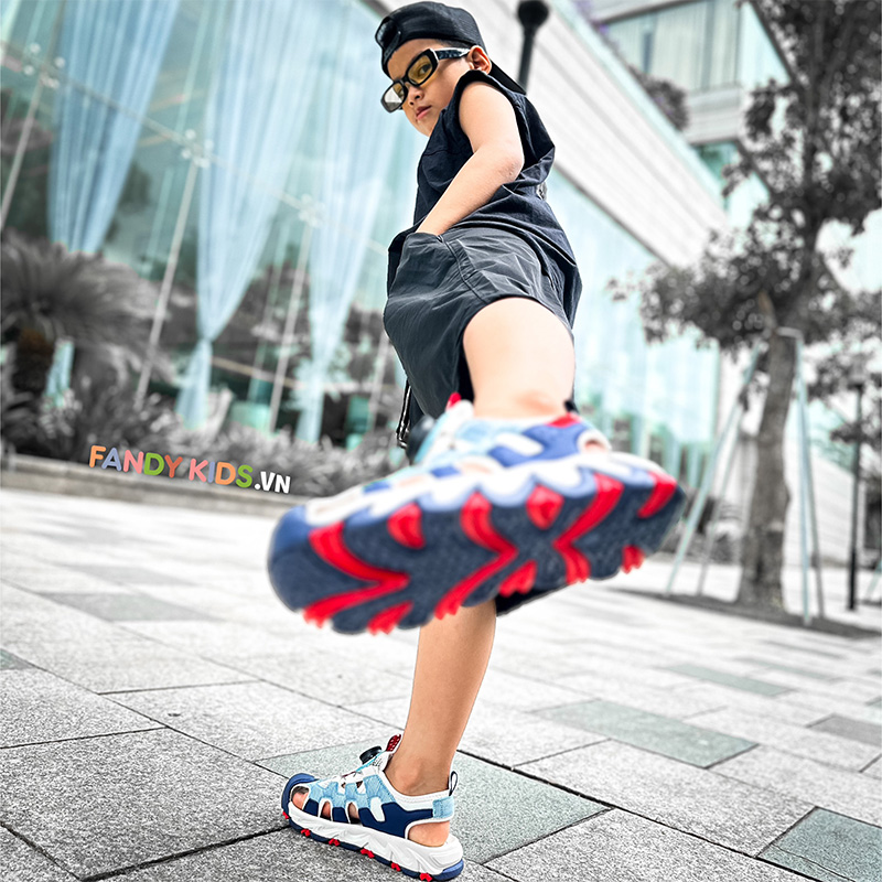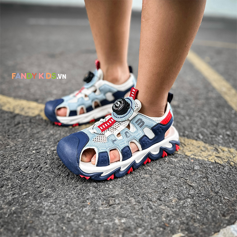 Trải nghiệm thực tế mẫu Giày Sandal trẻ em Fandy Kids Khóa vặn Eva Xám Navy AU7880 khi sử dụng trong việc tập luyện